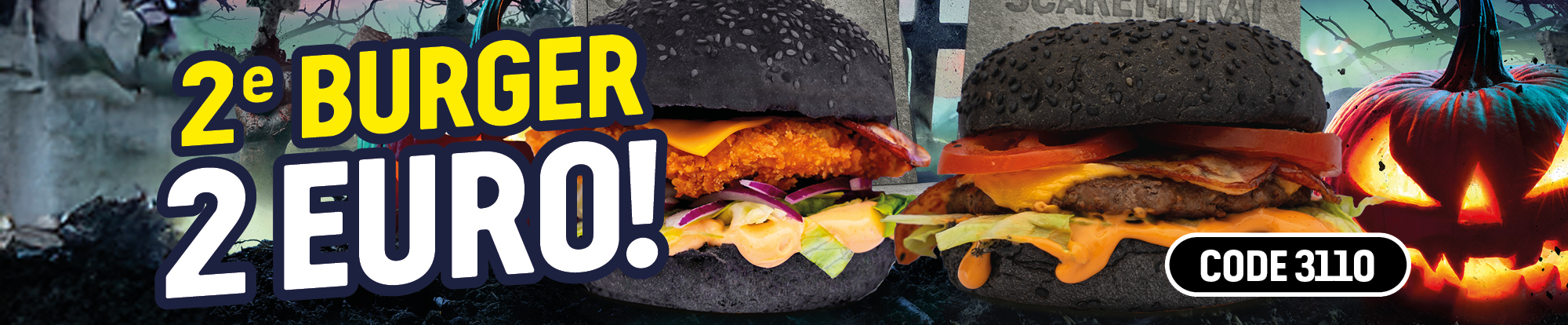 Burger met cheddar, tomaat, sla, ketchup en mayonaise, een drankje en een bijgerecht naar keuze (geschikt als vegetarische optie, kruisbesmetting is niet uit te sluiten).